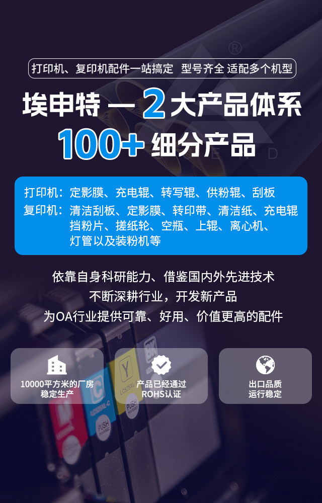成立于2005年,下屬工廠從2000年始一直致力于打印機(jī)、復(fù)印機(jī)配件的研發(fā)、設(shè)計(jì)、制造及銷售。